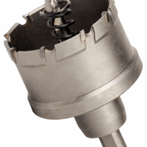 Tungsten carbide tipped with positive rake teeth for high alloy and stainless steels, nonferrous metals and reinforced fabrics. Complete assembly with arbor and pilot drills. Recommended for use on sheet metal up to 1/8″ (3mm) thick.