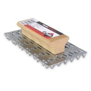 Facade mortar scraper with plastic handle and Plate dimensions 10″ x 5 3/4″.