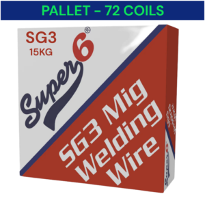 Bulk pack of SUPER 6 SG3 Steel MIG Wire 15kg – 1.0mm (Pallet of 72) designed for industrial welding. Offers smooth feeding, clean welds, and excellent performance on mild steel.